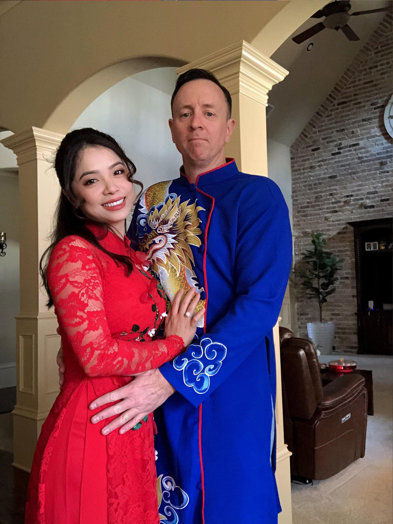 "Ở Mỹ, những nơi đông người Việt sinh sống hoặc các chùa vẫn trang trí mai, đào. Không khi Tết bao trùm. Nhiều chị em diện áo dài, đón xuân như chính ở quê hương mình vậy. Chồng mình rất thích Tết, thích món ăn và những phong tục của người Việt. Tết đến, anh cũng hào hứng cùng chung vui với mình”, chị Châu chia sẻ.