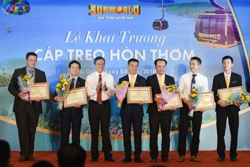 Phát biểu tại lễ khai trương Cáp treo Hòn Thơm, ông Phạm Vũ Hồng – Chủ tịch UBND tỉnh Kiên Giang nói: “Du lịch Phú Quốc những năm qua đã chứng kiến sự thay đổi vượt trội bởi có những Tập đoàn lớn, những nhà đầu tư có tầm nhìn. Đặc biệt, những sản phẩm du lịch mới mẻ, hấp dẫn như quần thể vui chơi giải trí biển Sun World Hon Thom Nature Park mà Sun Group đầu tư khai trương hôm nay sẽ là cú hích lớn, đem đến cho đảo Ngọc những luồng khách mới, đa dạng hóa dịch vụ vui chơi giải trí để từ đó tăng thời lượng lưu trú của du khách đến đảo”.