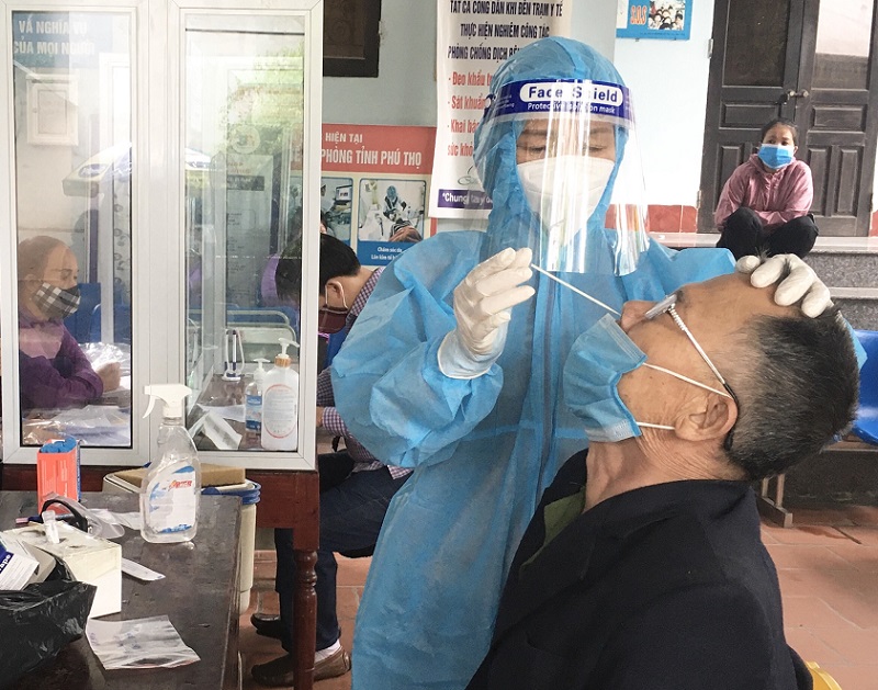 Nhân viên y tế lấy mẫu xét nghiệm cho người dân xã Sơn Vi, huyện Lâm Thao, Phú Thọ