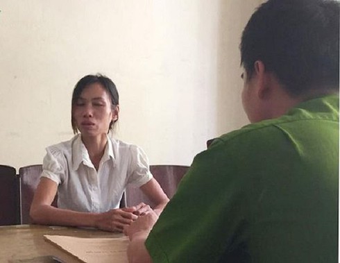 Đối tượng Đinh Thị Châm tại Công an huyện Thanh Sơn. |