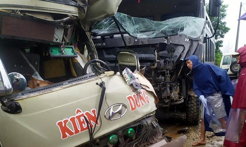 Tai hiện trường, xe tải bị hư hỏng nặng phần đầu, vỡ gương chắn gió. Xe khách bị thiệt hại nặng hơn, khi một nửa phần thân của bên lái bị bẹp rúm, hư hỏng nặng.