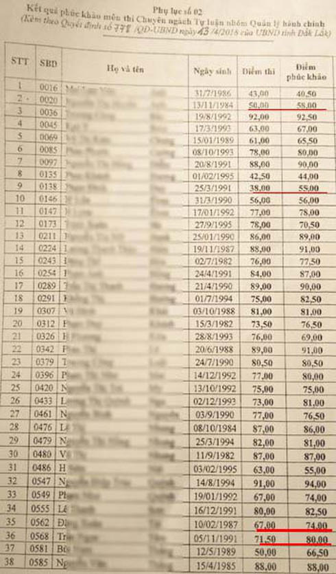 Thông cáo báo chí của UBND tỉnh Đắk Lắk còn cho biết, sau khi có kết quả chấm phúc khảo, có 8 thí sinh đã thay đổi xếp hạng lên đứng đầu tại vị trí tuyển dụng.