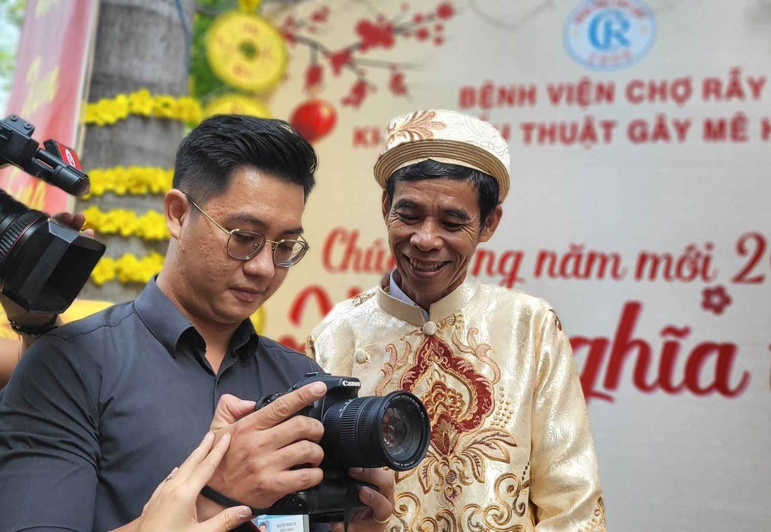 “Lần đầu tiên mặc áo dài nên chưa quen, không biết chụp ảnh có đẹp không. Cảm ơn các bác sĩ đã mang niềm vui cho chúng tôi. Đường hoa Nguyễn Huệ của TP.HCM chưa được đi nhưng nay tôi đã biết đường hoa Chợ Rẫy”, ông nói.