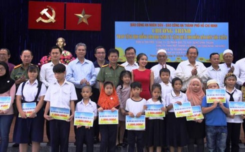 Tại buổi lễ, Phó Thủ tướng Trương Hòa Bình đã cùng đại diện các ban ngành của TP.Hồ Chí Minh, Ủy ban MTTQ Việt Nam TP.Hồ Chí Minh và các đơn vị tài trợ trao tặng 200 suất học bổng (trị giá mỗi suất là 1 triệu đồng) cho các em học sinh nghèo là con em đồng bào Chăm đang sinh sống trên địa bàn.