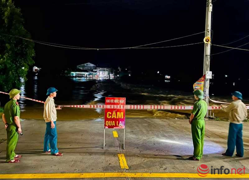 Trước tình hình đó, chính quyền địa phương và lực lượng chức năng đã tiến hành đặt biển cảnh báo, chăng dây, canh gác, cấm không cho người và phương tiện qua lại cầu tràn.
