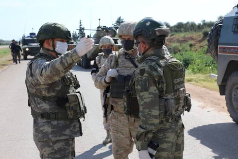 Binh sĩ Nga - Thổ Nhĩ Kỳ đeo khẩu trang khi thực hiện cuộc tuần tra chung ở tỉnh Idlib của Syria. (Ảnh: Reuters) |