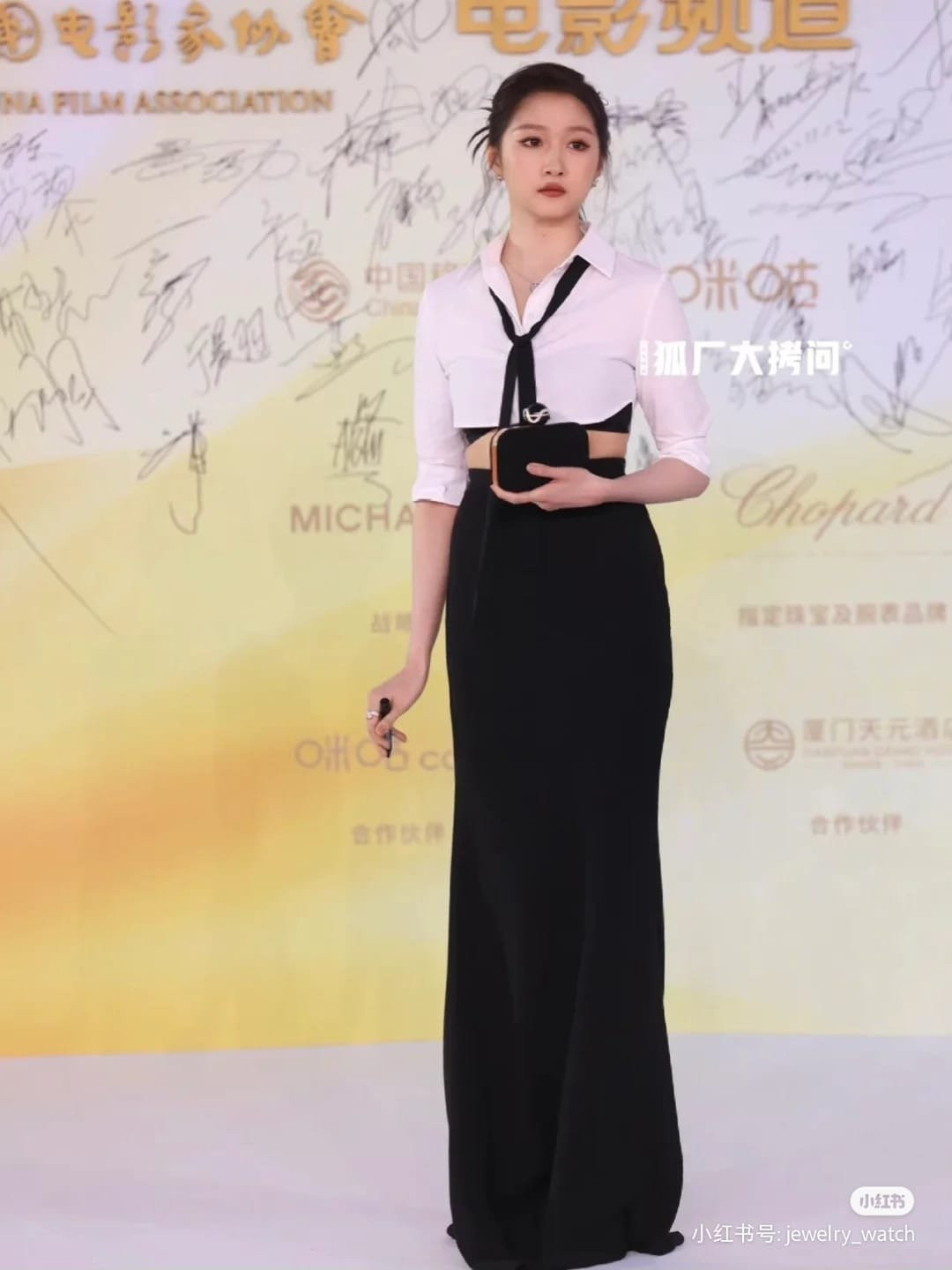 Trước đó, ngày 12/11, Quan Hiểu Đồng xuất hiện tại thảm đỏ của Lễ trao giải Kim Kê trong set đồ đen - trắng. Nữ diễn viên bị đánh giá là chọn đồ xuề xòa, chưa hợp dáng.