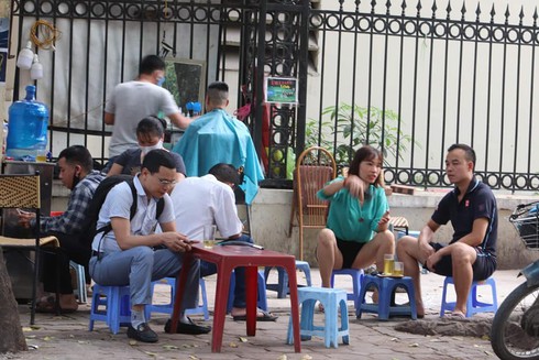 Các quán trà đá vỉa hè trên một số tuyến phố vẫn hoạt động, khách ngồi gần nhau và không đeo khẩu trang bất chấp khuyến cáo về dịch bệnh nguy hiểm. |