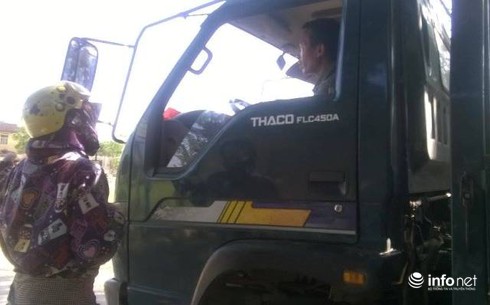 PV hỏi các lái xe ra vào cổng chào của xã Hương Vĩnh đều nhận được câu trả lời, tất cả xe ra, vào đều phải nộp phí (ảnh: TH) |