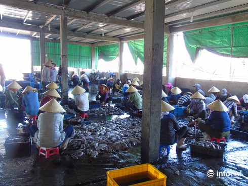 Lao động nông thôn làm việc thời vụ trong một cơ sở chế biến hải sản ở huyện Bố Trạch (Quảng Bình) |