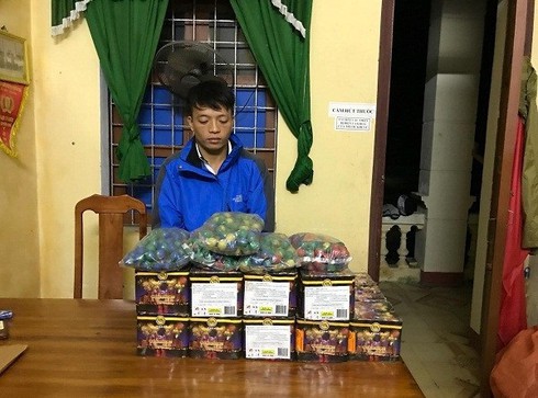 Trước đó, vào 3 giờ ngày ngày 17/11, tại địa phận thôn Đắc Thắng (xã Gia Ninh, huyện Quảng Ninh, tỉnh Quảng Bình), thực hiện kế hoạch tuần tra kiểm soát về pháo trên địa bàn, lực lượng phối hợp Công an huyện Quảng Ninh do Đội CSGT chủ trì đã phát hiện 1 đối tượng điều khiển xe mô tô chở phía sau 1 bao tải có biểu hiện nghi vấn. Khi phát hiện thấy tổ tuần tra thì đối tượng đã vứt bao tải và bỏ chạy. Kiểm tra bên trong bao tải do đối tượng vứt lại tại hiện trường phát hiện có 24 hộp pháo, với trọng lượng 32kg.