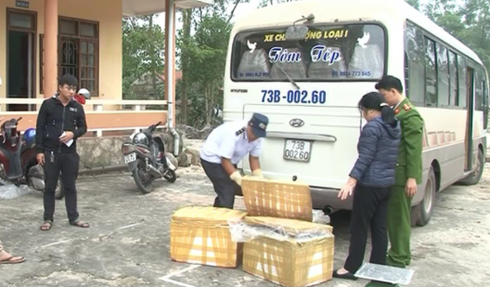 Trước đó, vào khoảng 7h sáng 30/11, trong lúc tuần tra, kiểm soát trên địa bàn thôn Tân Phong, xã Cam Thủy, huyện Lệ Thủy, lực lượng Công an huyện Lệ Thủy phát hiện tại kho nhà anh Lê Văn Thuấn (SN 1975, trú tại thôn Tân Phong, xã Cam Thủy, huyện Lệ Thuỷ ) đang bốc xếp 3 thùng xốp lên xe khách mang BKS 73B - 002.60 của nhà xe Tôm Tép do lái xe Lại Huy Vân (trú tại TP. Đồng Hới) điều khiển, có biểu hiện nghi vấn nên tiến hành kiểm tra.