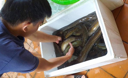 Cá chình đến tuổi thu hoạch được được các thương lái đến mua tận ao. Cá thu hoạch bao nhiêu được bán hết đến đó với mức giá trung bình hơn giá 500.000 đồng/kg.