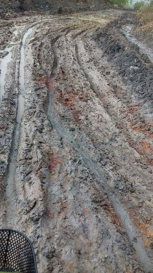 Trời mưa, nhiều đoạn trở nên lầy lội |
