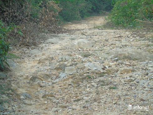 Người dân địa phương cho biết “nền đường nhiều đoạn được san ủi, mở rộng hơn so với ngày trước, nhưng nền đất đá ở độ dốc cao, khi có nước mưa chảy mạnh là bị xói lở, trơ lại đá. Có dự án làm đường rồi, nhưng chỉ làm được một đoạn thì nhà thầu cũng rút lui, không biết khi nào mới làm tiếp”.