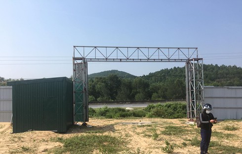 Dự án phía ngoài được quây tôn kín, có cổng ra vào. Bên trong dãy hàng rào tôn của dự án, bãi cát hoang vu mọc đầy cỏ dại, không có công trình nào được xây dựng.