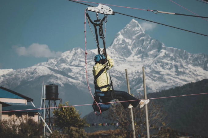 Đường zipline ở Nepal có tầm nhìn ra đỉnh núi Himalaya cao 8.000 m. Ảnh: High Ground Nepal