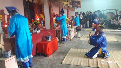 Các cụ cao niên làm lễ mời thần Hoàng về dự lễ Cầu ngư. |