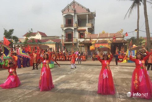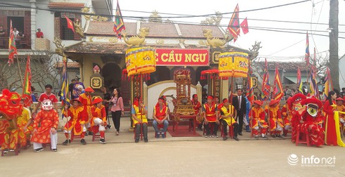 Lễ rước kiệu từ đình tổ về miếu Linh Ngư. |