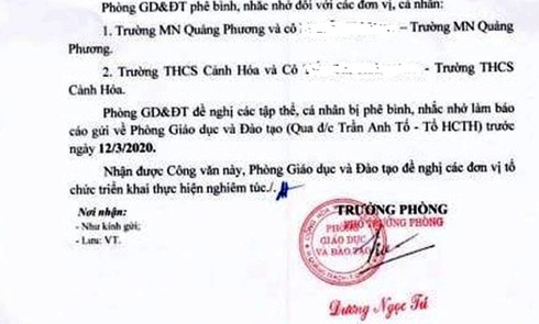 Công văn phê bình, nhắc nhở hai giáo viên sử dụng mạng xã hội thiếu chuẩn mực. |