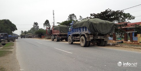 Những ô tô chở đầy đá hộc, không che biển số cứ xếp hàng, cách trạm KTTT một đoạn, chờ đợi cán bộ đi “ăn cơm trưa” để vượt qua trạm.