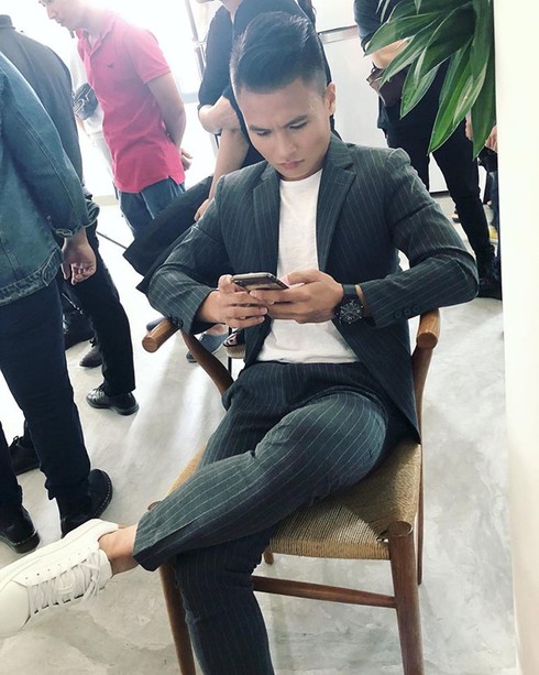 | Quang Hải nhận được nhiều lời khen về ngoại hình khi mặc vest chỉnh tề. Anh chàng dường như khá ưa chuộng phong cách lịch lãm, đúng chất quý ông. |