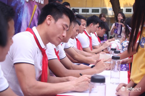 Sau màn trò chuyện là tiết mục tặng chữ ký, từng em nhỏ sẽ mang theo bóng hoặc áo bóng đá lên sân khấu để các tuyển thủ ký tặng.