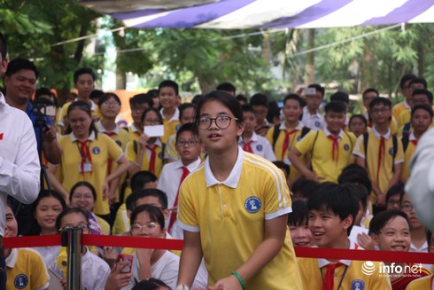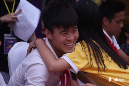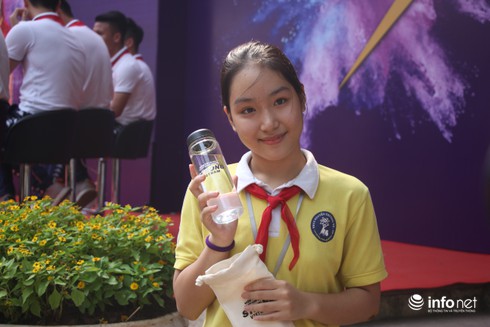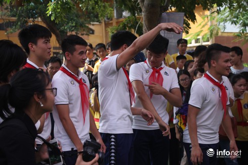 Tiến Dũng đã tặng chai nước của mình cho một học sinh của trường.