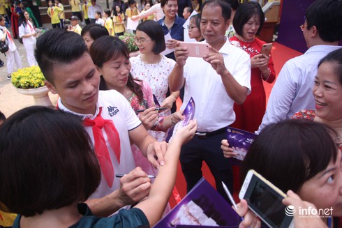 Quang Hải trong vòng vây của các fan nhí.