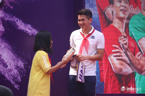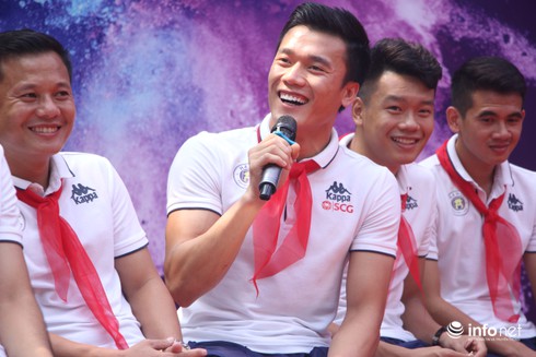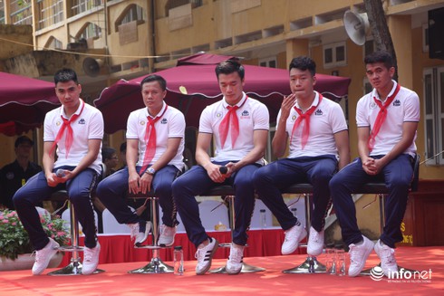Tại buổi giao lưu, Quang Hải, Duy Mạnh, Tiến Dũng cùng đồng đội đã có những chia sẻ về quá trình khổ luyện để trở thành một cầu thủ chuyên nghiệp .