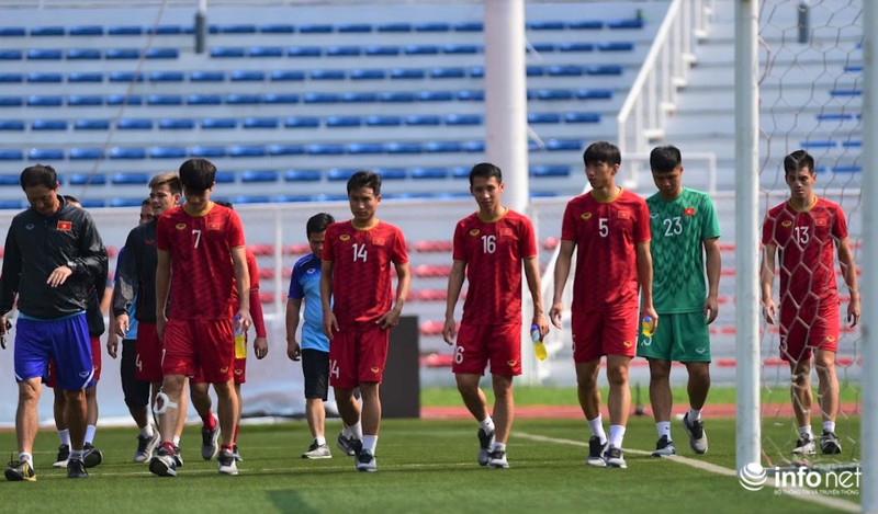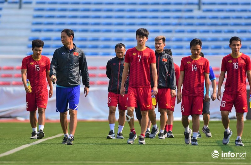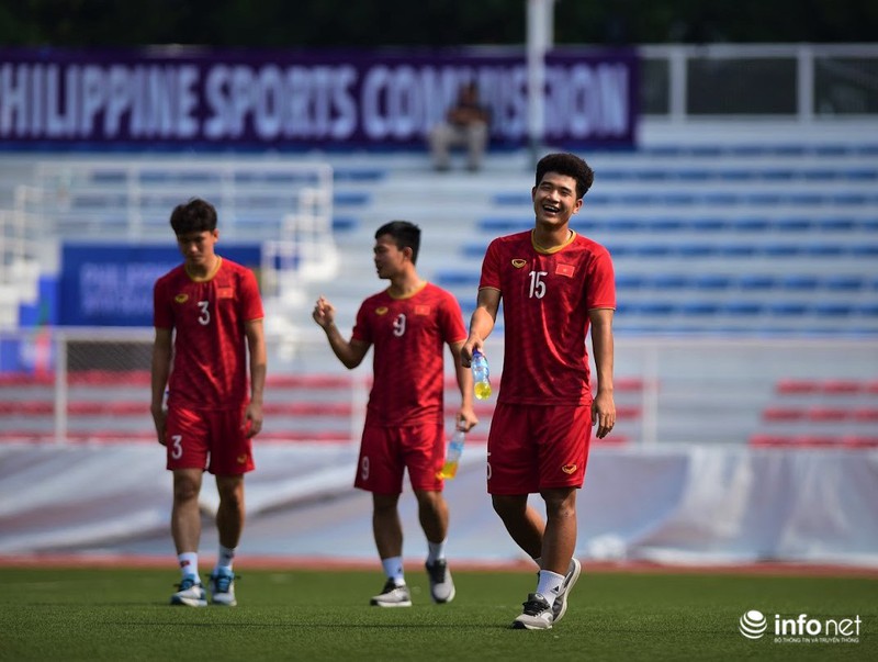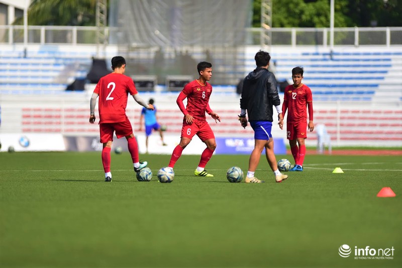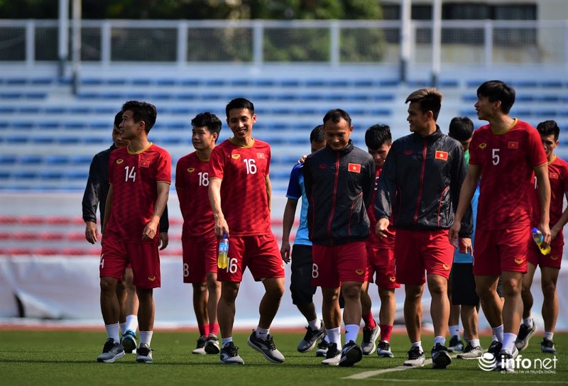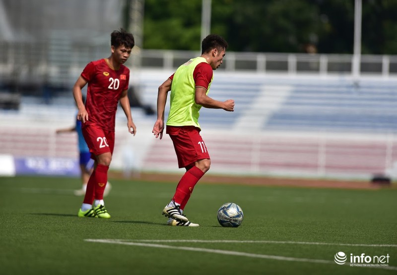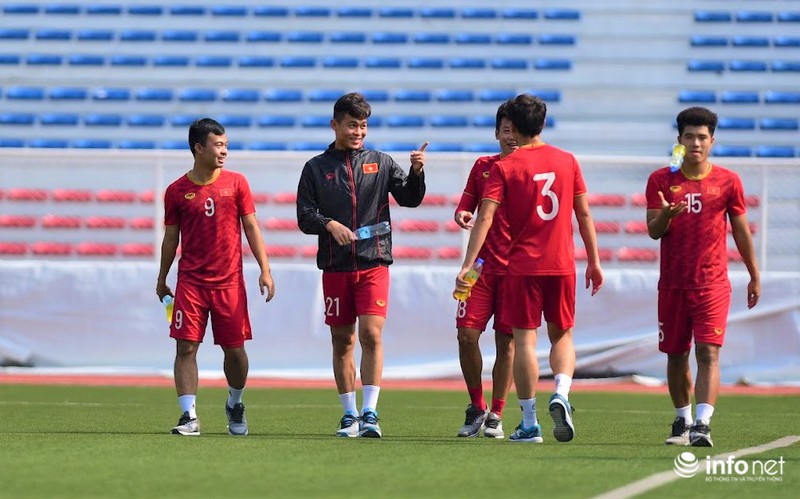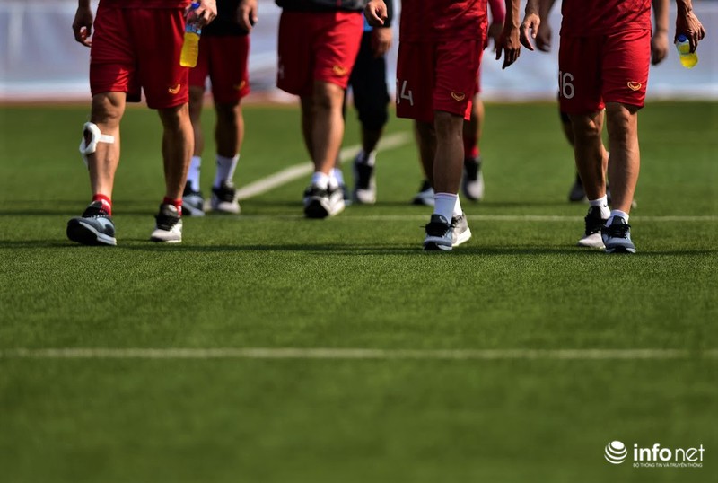 Trong buổi tập vào sáng nay, các cầu thủ ra sân trong trận gặp U22 Thái Lan hôm qua được tập nhẹ, chủ yếu đi bộ và tập những bài tập nhẹ nhàng để khôi phục thể lực.