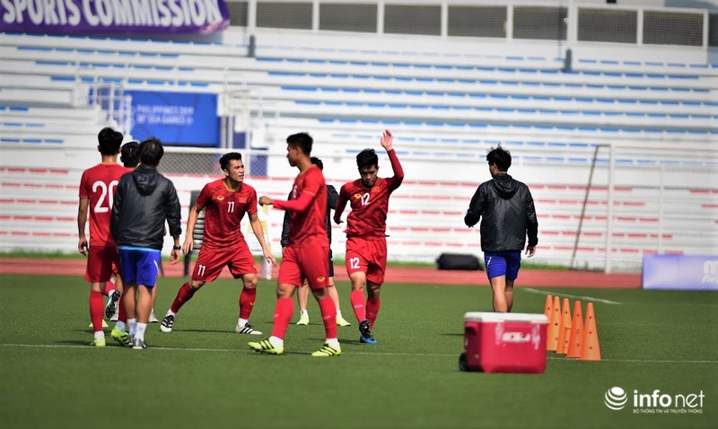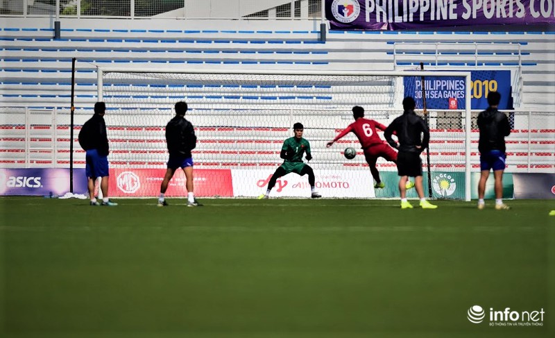 Các cầu thủ ra sân tập vào lúc 10h sáng ngày 6/12 (giờ địa phương) trên sân vận động Rizal Memorial.