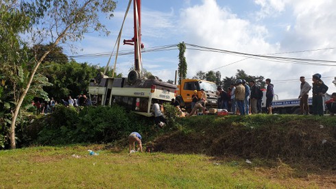 Quảng Nam: Đánh lái tránh xe tải, xe khách lật ngửa dưới suối