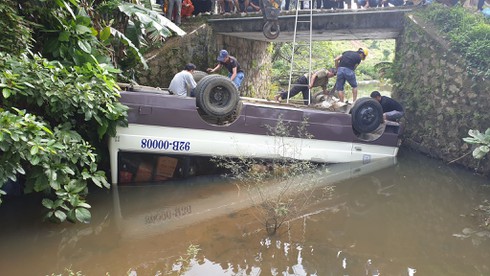 Ngay khi xảy ra vụ tai nạn, người dân địa phương đã nhanh chóng chạy đến hiện trường hỗ trợ, đưa những người trong xe lên bờ. Rất may mắn vụ tai nạn không gây thiệt hại về người, song đã làm hành khách một phen hoảng sợ.
