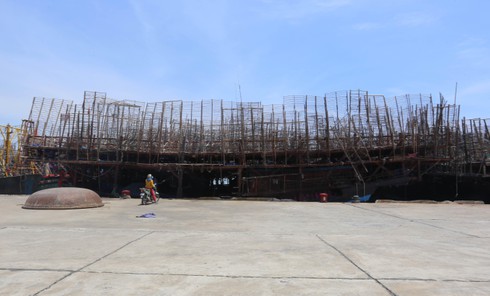 Nhiều con tàu phải nằm bờ do lúc trước mực khô không tìm được đầu ra |