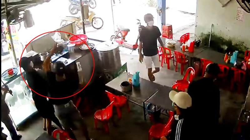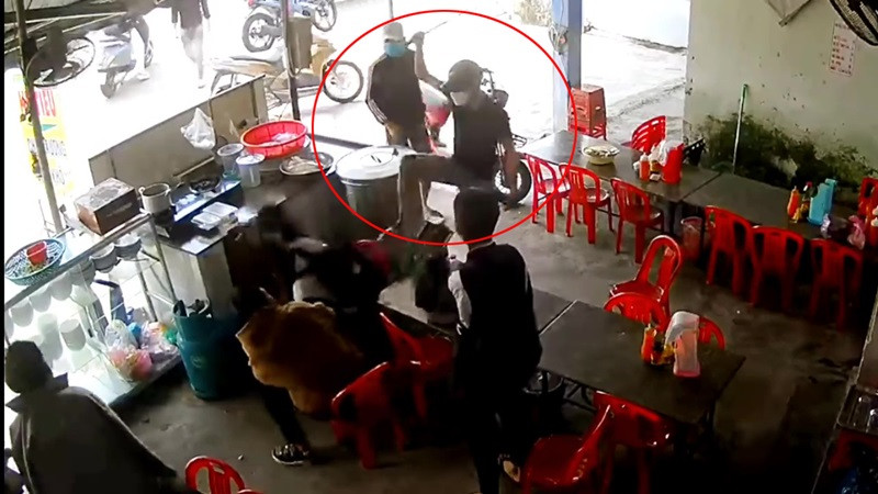 Vừa vào quán, một đối tượng hỏi “thằng mô” rồi cầm tuýp sắt đánh vào tay một em học sinh. Hai đối tượng khác cũng cầm tuýp sắt rượt đuổi hai học sinh còn lại.