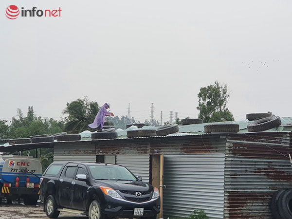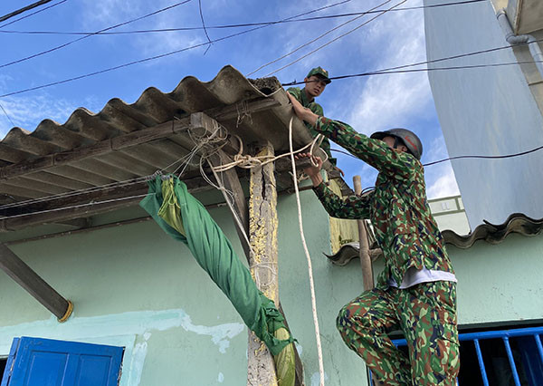 Tại địa bàn xã Bình Thuận (huyện Bình Sơn) các nhà mái tôn của các công nhân tham gia xây dựng các công trình ở địa phương cũng đã được gia cố thêm lốp xe trên mái nhà, các bao nilon nước. Đặc biệt, các phương tiện máy móc ngừng hoạt động và đậu đỗ an toàn.