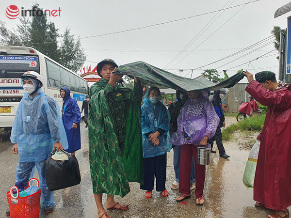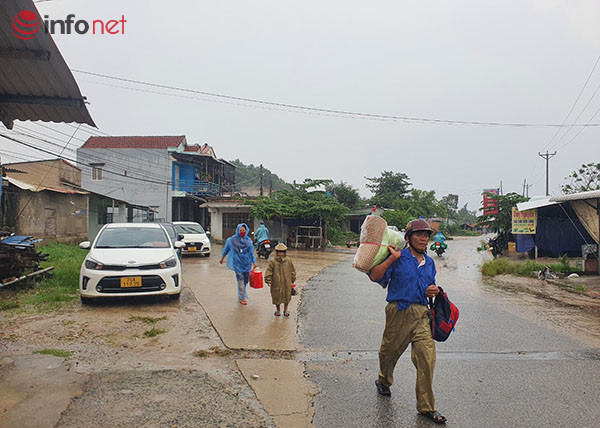 Ghi nhận của PV Infonet tại Bình Đông (huyện Bình Sơn) cho thấy, khu vực thôn Sơn Trà nằm sát bờ biển loa thông báo yêu cầu người dân liên tục ra xe ô tô di dời đến nơi khác an toàn trước khi cơn bão số vào bờ. Người dân gồm người già, trẻ em… di chuyển ra xe tại cổng thôn với những đồ dùng cá nhân như quần áo, chăn màn, thức ăn dự trữ mang theo, dưới sự hướng dẫn của lực lượng chức năng địa phương.