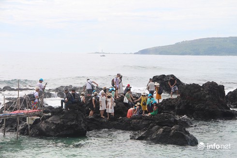 Những tảng đá đen tuyệt đẹp trên đảo Bé cuốn hút du khách đến du lịch huyện đảo Lý Sơn. |