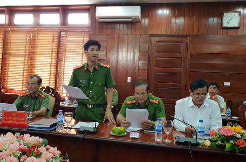 Đại tá Võ Văn Dương - Phó Giám đốc Công an tỉnh Quảng Ngãi báo cáo kết quả công tác phòng, chống AIDS, ma túy, mại dâm trên địa bàn tỉnh. |