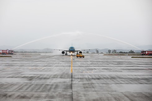 Màn phun vòi rồng chào đón đường bay mới Vân Đồn - Đà Nẵng |