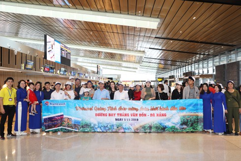 Những hành khách đầu tiên bay chuyến Vân Đồn - Đà Nẵng. |