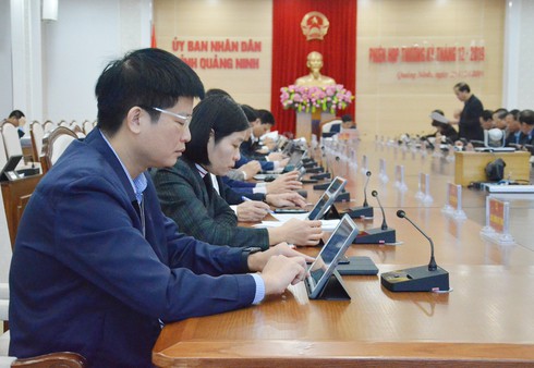 Ngày 25/12, UBND tỉnh Quảng Ninh đã tổ chức phiên họp thường kỳ tháng 12. Nhằm thiết thực xây dựng Chính quyền điện tử, thành phố thông minh hiệu quả, tại phiên họp, lần đầu tiên UBND tỉnh Quảng Ninh áp dụng hình thức họp không giấy tờ.