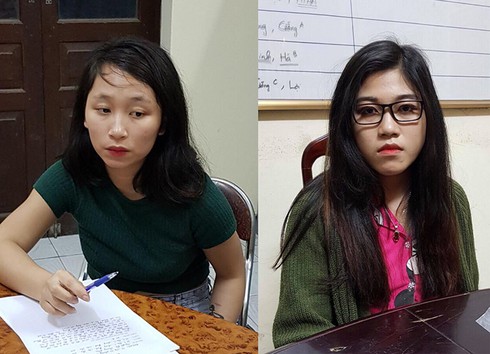 Hai hotgirl Phương Thảo và Thanh Hương tại cơ quan công an. |