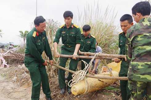 Theo cơ quan chức năng, quả bom có trọng lượng gần 250kg, đường kính trên 31cm, chiều dài 145cm.