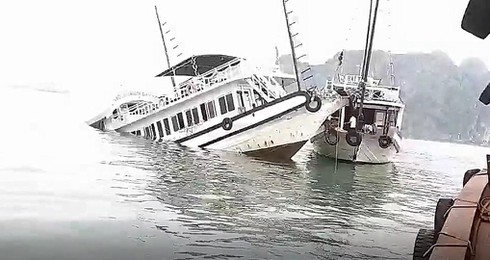 Quảng Ninh: Tàu du lịch bất ngờ bị chìm trên vịnh Hạ Long