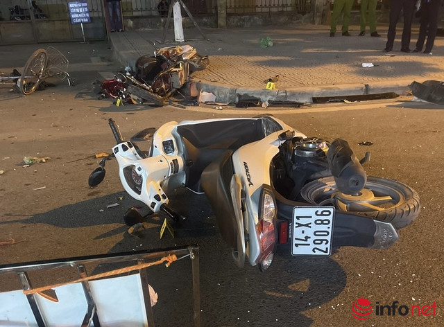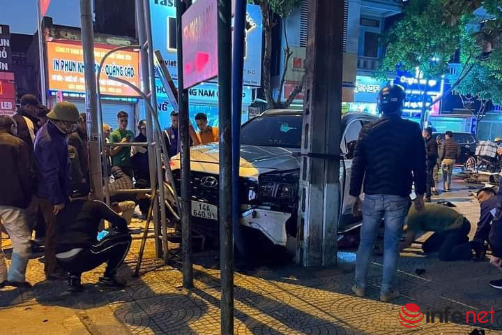“Theo báo cáo nhanh, ô tô màu trắng hiệu Hyundai Santafe BKS 14A - 640.xx (chưa rõ danh tính tài xế) đi theo hướng từ chợ về cầu sông Chanh, bất ngờ đâm một loạt xe máy. Đến khi ô tô húc vào cột điện bên đường mới dừng lại. Đầu xe ô tô hư hỏng nặng.