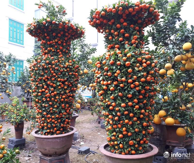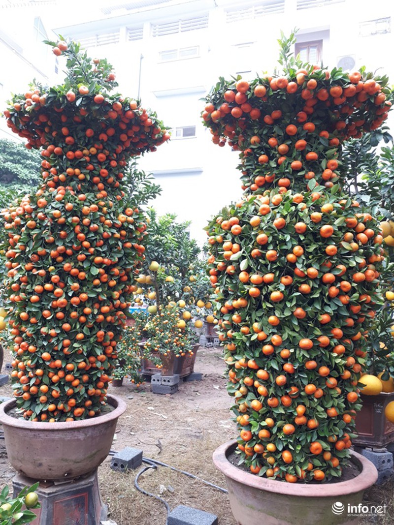 Đôi quất hình lục bình này do một nhà vườn ở Song Phương, Hoài Đức, Hà Nội đang bày bán trên phố Lạc Long Quân với giá 35 triệu đồng/cặp. |