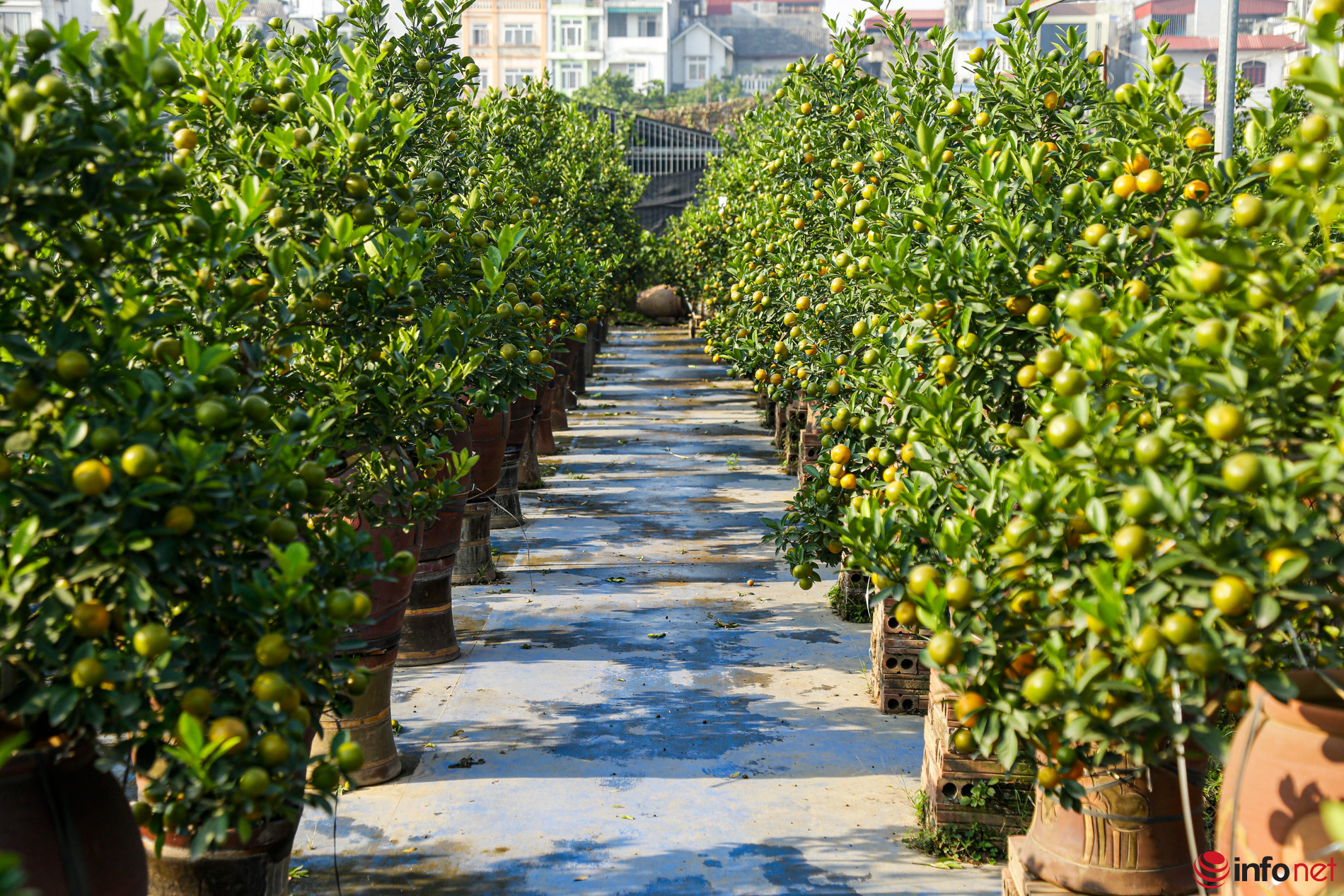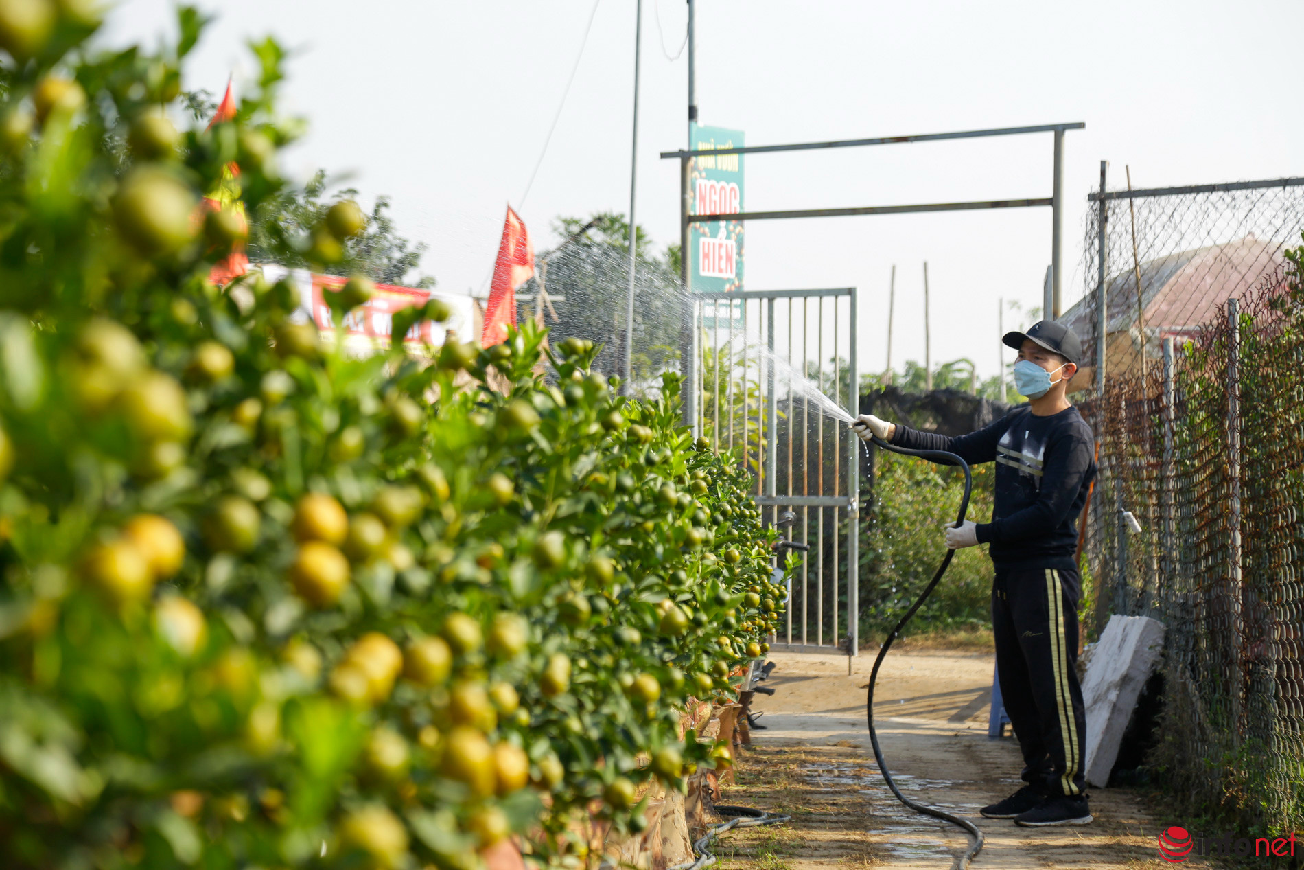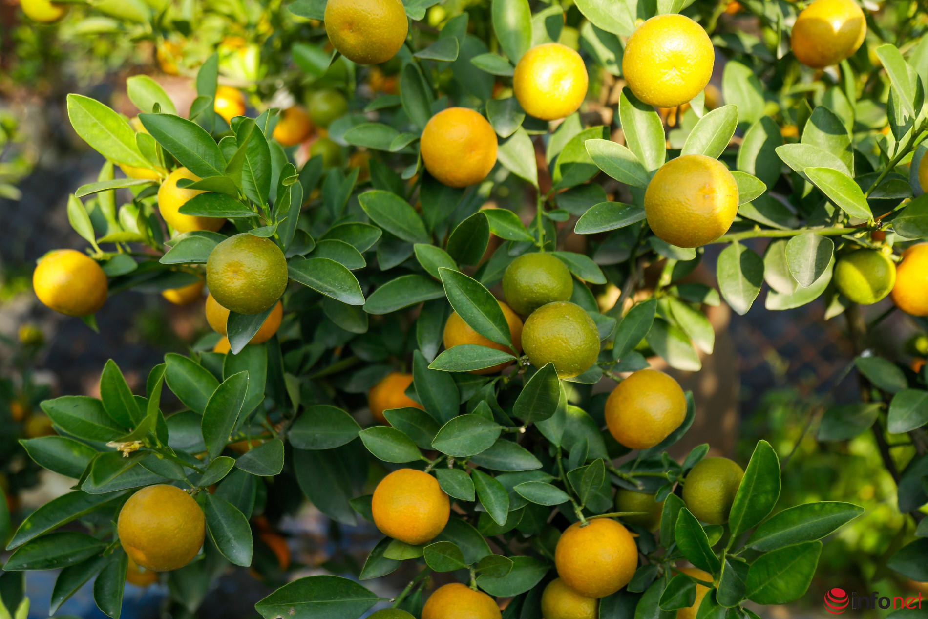 Hiện tại quất vẫn còn xanh, nhưng chỉ khoảng chục ngày nữa là quất sẽ chín vàng. ""Năm nay thời tiết không thuận lợi lắm khi thiếu mưa khiến quả quất có phần nhỏ hơn, không được to mọng như mọi năm. Thời điểm này chúng tôi chủ yếu quan tâm cho cây ăn, chăm chút điều độ không được thừa hay thiếu nước", ông Hoàng Văn Toàn, nhà vườn Toàn Xuyến, quận Tây Hồ, Hà Nội cho biết.