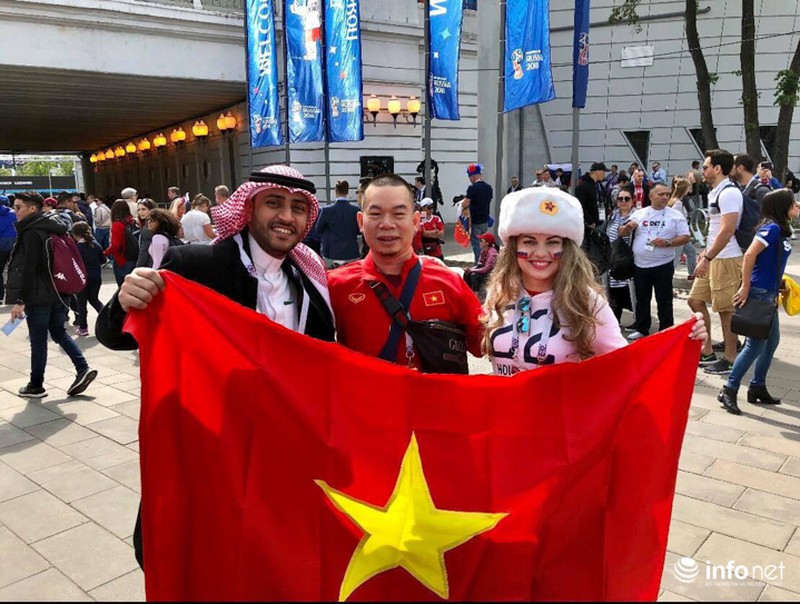 Trong lễ khai mạc và trận khai mạc giữa chủ nhà Nga và Saudi Arabia, lá Quốc kỳ Việt Nam bất ngờ tung bay trên khán đài giữa hàng vạn người hâm mộ, cổ động viên.